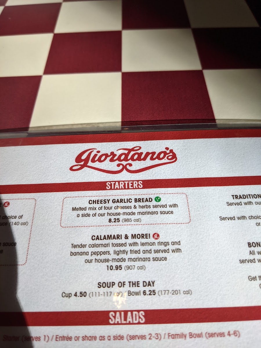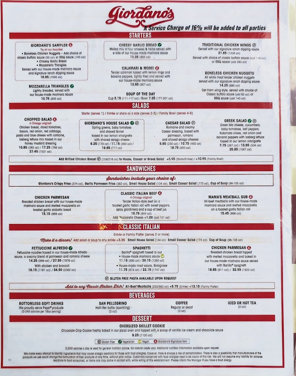 Giordano's menu is a blend of comforting, hearty dishes centered around their signature stuffed deep dish pizza, a classic choice for those looking to enjoy a genuine Chicago-style meal. Alongside the iconic deep dish, the menu offers casual bites and satisfying starters such as mozzarella triangles and cheesy garlic bread that set a welcoming tone for sharing with friends or family.